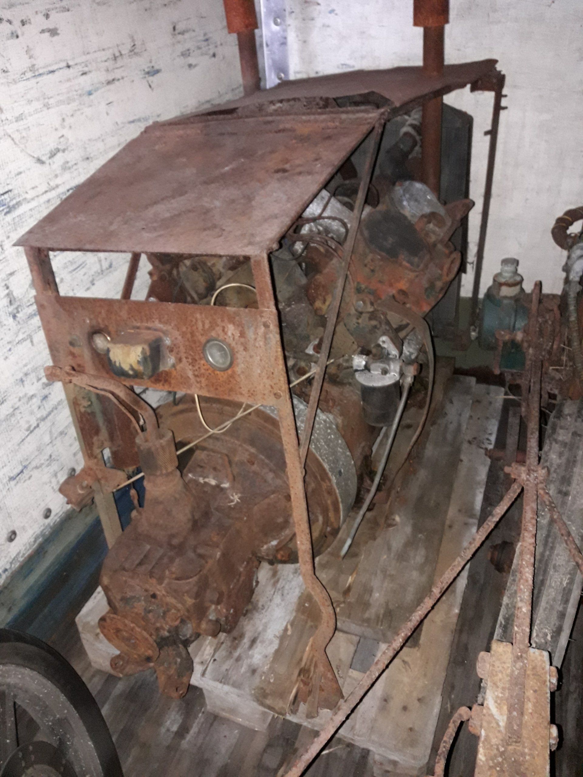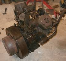 1947 2V95 Engine. Serial No. 4951/102/1047. Complete engine with electric start that had been sitting in a shed for 50 years. When purchased the engine was complete and visually in good conditon. It was not siezed but would not turn a full 360*. After sticking valves, fuel pumps and oil pump were eliminated the next probable cause of carbon build up on top of the piston was checked. This is a known problem with Vee engines that stand idle for long periods. The carbon flakes off the cylinder head and as it is at an angle the carbon accumulates on the lowest edge of the piston. This was the problem and once resolved the engine started and ran well. The radiator is original but not in a good condition, the core had a number of poor repairs that were leaking badly. Rectification work has been done to return it to usable condition. It is intended to use this engine for a working display of Turner equipment which would comprise the engine along with the two winches and gearbox shown below.