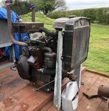 1952 Turner 2V95. Serial No. 2V/852/1056. Drove a sawbench near Banavie Fort William. My second Turner engine, purchased about 2003 from a scrap yard in Banavie. When purchased it was siezed frost damaged and missing its radiator, fuel tank and the exhaust was rusted away. Due to various reasons I sold it to a friend than bought it back and started work on it about 2012. It was stripped, the frost damage welded, cleaned and rebuilt. The fuel system was stripped and rebuilt, a NOS radiator was purchased and fitted. The fuel system had been from a remote tank and there were no fittings for an engine mounted tank so new fittings and new tank were made and fitted.