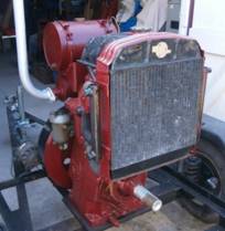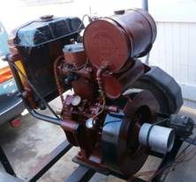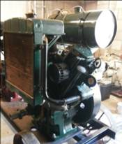 Another unusual engine a 2V95 fitted with an original Turner re-circulating water pump in the cooling system (another one has since turned up in Sweden) It was originally fitted in a Petbow welder but unfortunately the welder and mounting frame had been removed and disposed off before I got it. The engine was purchased as shown in the first photo with agreement that it would all be secured to a pallet for me to arrange a courier to uplift. When it arrived the radiator had been removed and not sent as can be seen in the second photo. An over centre clutch that had been removed from another engine was included in the sale and it was delivered. A test run of the engine showed that it had low oil pressure, was firing erratically (possible timing or injection problem) , the water pump was leaking and there was a rattle from it. The top end has been stripped and repaired where necessary including an overhaul of the water pump. The over centre clutch, which was siezed and had a worn input shaft has been overhauled and fitted. I think it is better to retain ancillary equipment with it's original engine but as the welder had been disposed of before I got the engine and the clutch is an original Turner unit it makes a good unit. Photo's 3 and 4 show the engine now in running order with the correct radiator, fuel tank and replacement starter motor fitted.