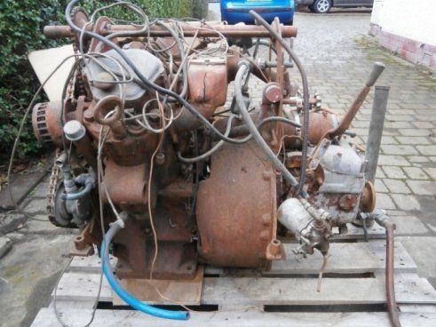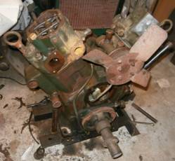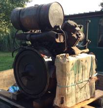 This was one of four fire damaged engines, two 2V95’s and two 1V95’s. The 2V95 engines were not badly damaged but the 1V95’s were badly damaged with one only suitable for spares. Although there was no known history with this engine it was fitted with an automotive clutch, marine type front engine mountings, two into one exhaust manifold with water injection and an extension shaft with bearing on the front crankshaft. One air filter was missing and the other had what looked like a cooler between the filter and the head.