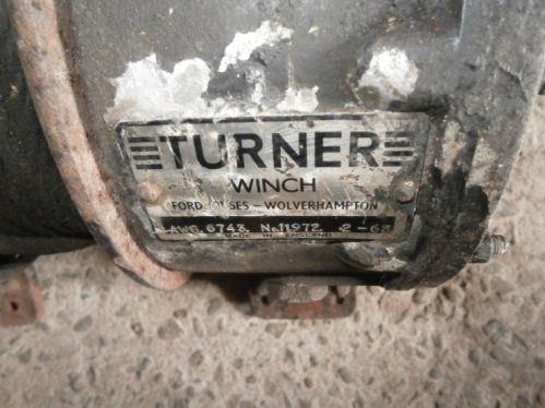 Turner Capstan Winch Serial No. 10014 6.64. The previous owner purchased it from a man in Jersey about 10 years ago and intended to fit it on his Series 1 Land Rover but never got round to it. I purchased it to add to my collection and on checking the mountings found it is actually for an Austin Gipsy. It is complete with the drive shaft and sliding clutch but is missing the operating lever.